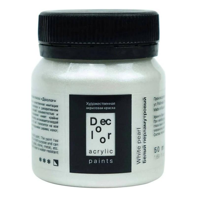 Акриловые краски Деколор создают покрытие, имитирующее благородные и цветные металлы, а также цвета с перламутровым отливом. Применяются во многих видах прикладного творчества, для декораторской работы и живописи. Краски Деколор обладают слабовыраженным запахом, исчезающим при полном высыхании, не подвержены пожелтению и растрескиванию, их можно смешивать между собой для создания новых оттенков, после испарения воды они образуют плотный кроющий слой. Время высыхания Деколор — до одного часа. Используются для окрашивания картона, древесины, гипсовых, каменных и бетонных поверхностей, композитных и пластиковых материалов, керамики, стекла и металла.