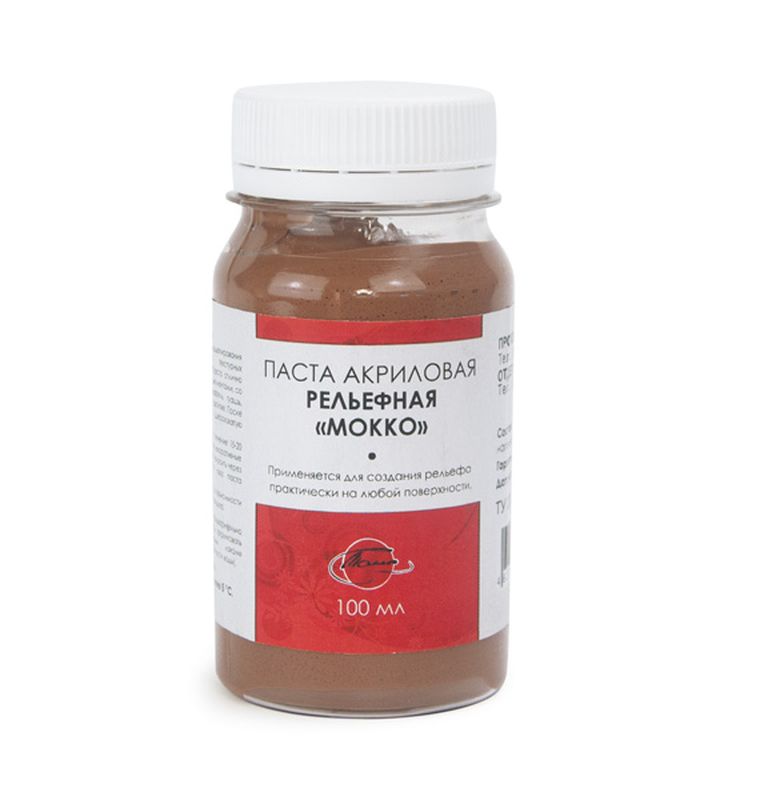 Пластичная акриловая паста используется для моделирования рельефных поверхностей. Рельефная акриловая паста представляет собой водорастворимую смесь акриловой смолы и тонкомолотого мрамора. Пасту можно смешивать с любыми акриловыми материалами Таир, акриловыми красками, гуашью, акварелью, другими водорастворимыми красками. Добавление в пасту акрилового лака увеличивает пластичность массы. После высыхания акриловая рельефная паста представляет собой пористую поверхность умеренной шероховатости, на нее хорошо ложатся любые краски: масляные, акриловые и прочие. Грубая паста позволяет создавать объемные рельефные работы. Наносить пасту можно на практически любую достаточно твердую поверхность. На впитывающие поверхности рельефную пасту можно наносить после предварительной грунтовки с помощью акрилового грунта, разбавителя или разведенного водой акрилового лака. Для нанесения пасты на отделываемую поверхность применяется мастихин или шпатель, рельеф формируется любыми инструментами по выбору мастера. Для просушки готового рельефа требуется до пяти часов, в зависимости от толщины нанесенного слоя.
