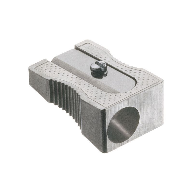 Металлическая точилка с одним отверстием для классических и трехгранных чернографитовых и цветных карандашей.