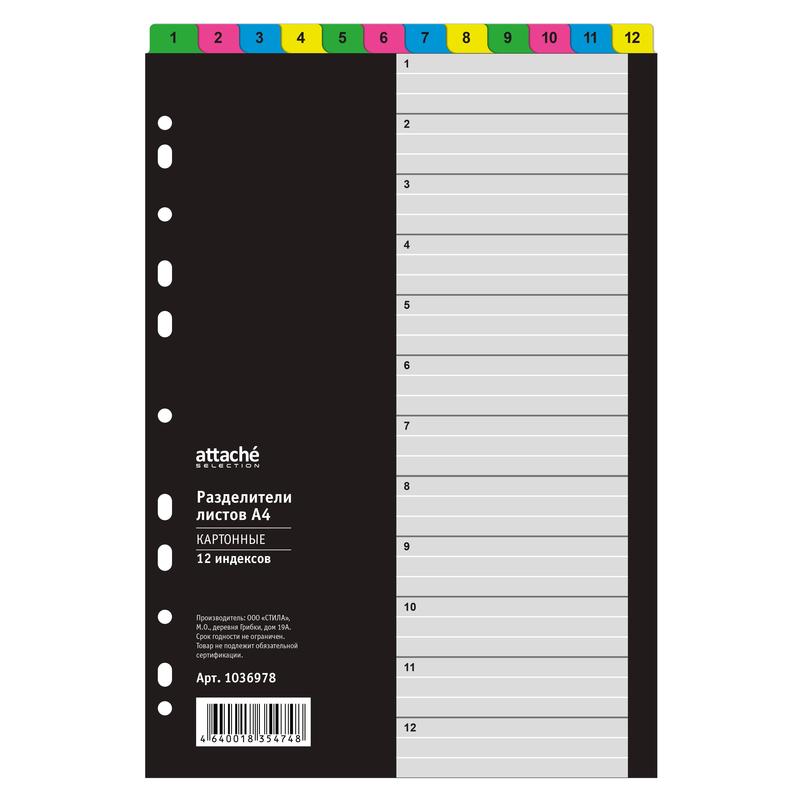 Разделители листов цифровые Attache Selection изготовлены из прочного картона. Универсальная перфорация совместима с различными типами папок.