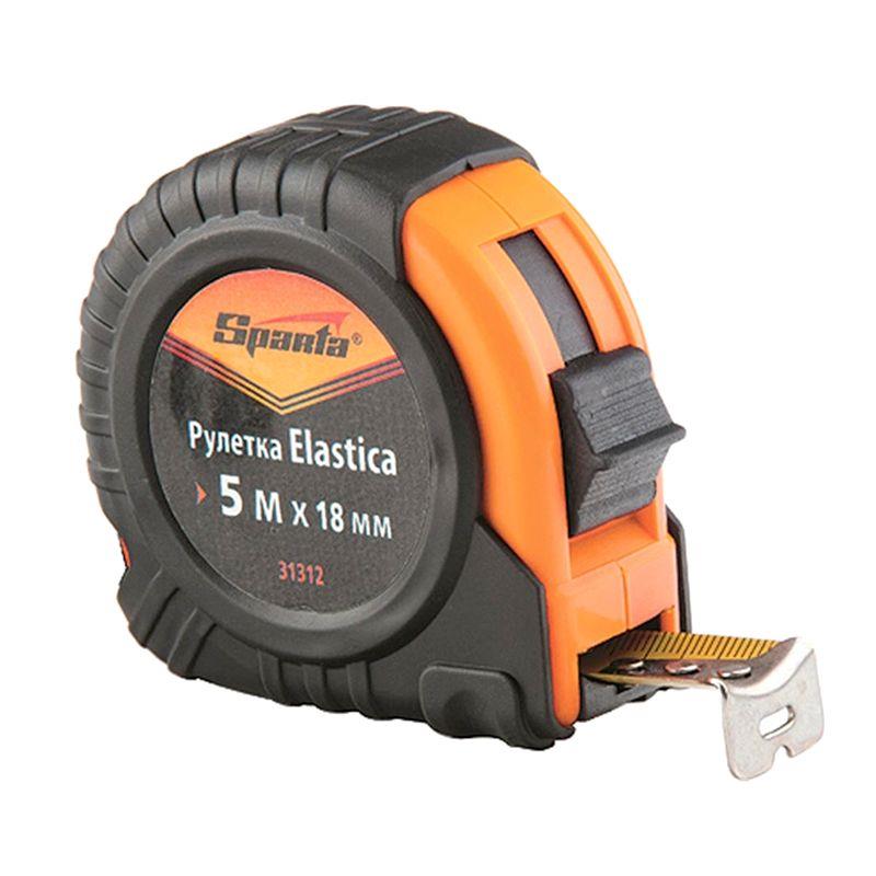 Рулетка Sparta Elastica с пластиковым обрезиненным корпус для защиты инструмента при падениях. Плавающий зацеп измерительного полотна обеспечивает точные измерения.