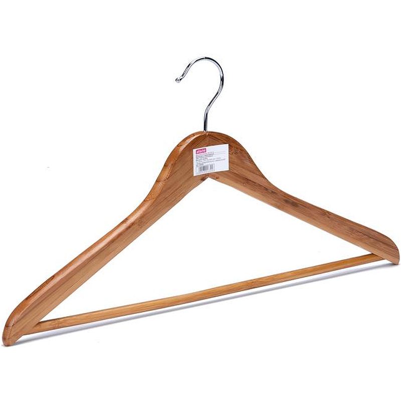 Вешалка-плечики Attache оснащена перекладиной для юбок и брюк. Материал: натуральный бамбук, крючок стальной хромированный Для одежды размеров: 48-50
