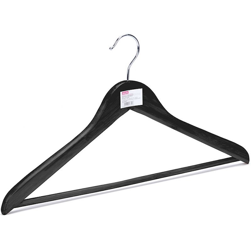 Вешалка-плечики Attache оснащена перекладиной для юбок и брюк. Материал: натуральный окрашенный клен, крючок стальной хромированный Для одежды размеров: 48-50