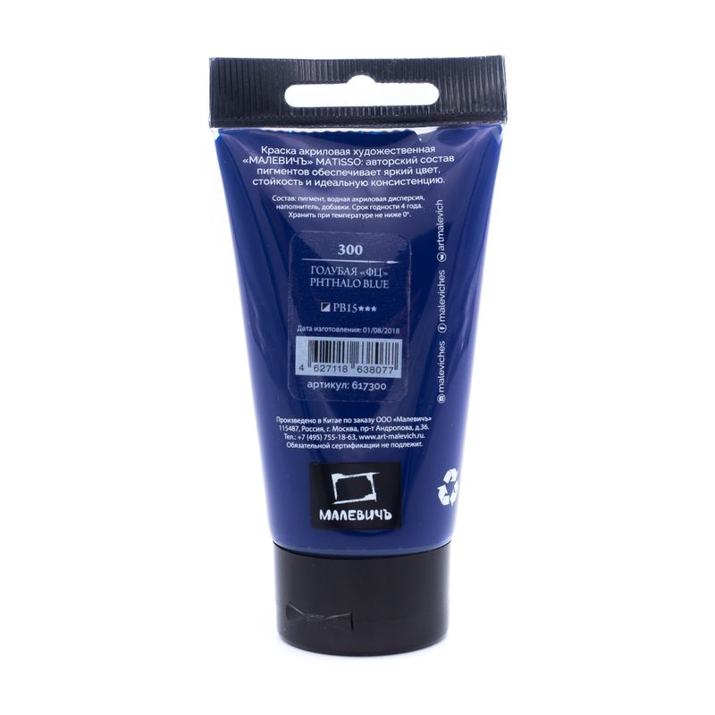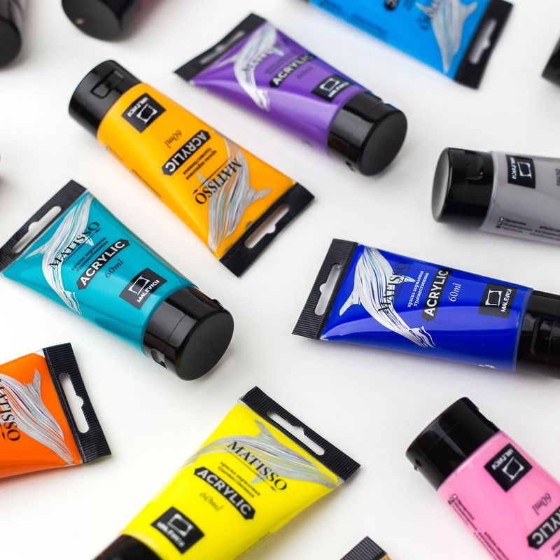 Акрил "Малевичъ" изготовлен из высококачественных натуральных пигментов с применением современных связующих веществ, благодаря чему он практически не имеет запаха, а яркие, насыщенные цвета имеют высокую светостойкость. Густая консистенция краски дает возможность художнику писать "пастозно", выделять объем, что отвечает потребностям последних тенденций живописи. Подходят как для классической живописи, так и для декоративно-прикладного искусства. Акрил можно использовать в технике "декупаж", росписи по ткани, дереву, металлу, камню или стеклу. При высыхании акрил образует водостойкую пленку, которая прочно закрепляется на поверхности.