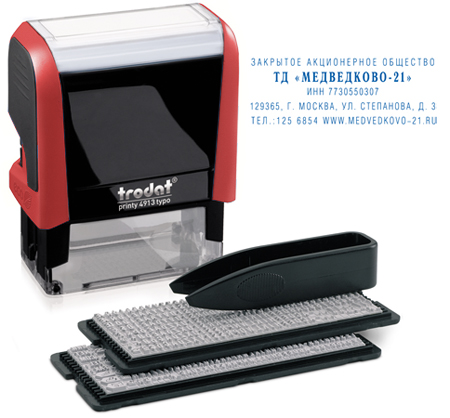 Штамп самонаборный 5 строк 58х22мм Trodat Printy 4913P4 Typo красный корпус 23-35 знаков в строке