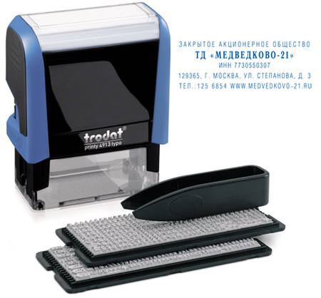 Штамп самонаборный 5 стр 58х22мм Trodat Printy 4913P4 Typo синий корпус 23-35 знаков в строке