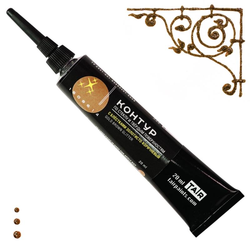 Контур акриловый по стеклу/твёрдым поверхностям с блёстками Таир золотисто-коричневый 20мл