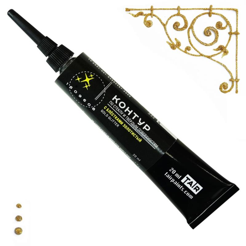 Контур акриловый универсальный с блестками Таир Глиттер золотистый 20мл