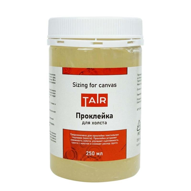 Проклейка для холста представляет собой полупрозрачную водоразбавляемую пасту, изготовленную на основе натуральных клеев и природных смол. Этот состав используется для придания прочности и дополнительной жесткости текстильной подложке, устранению повышенной гигроскопичности холста. На проклеенный холст лучше ложится грунтовка, благодаря этому расход грунта снижается до оптимального количества. Качественная проклейка позволяет избежать чрезмерного поглощения грунтом связующего вещества из красок. Благодаря этому снижается вероятность пожухания красочного слоя, способствует сохранению художественной работы на более длительное время и укреплению красочного слоя. Консервирующие вещества, входящие в состав проклейки, предохраняют холст от порчи, препятствуют поражению грибком и плесенью. Проклейка от компании Таир подходит для всех видов грунта. Для нанесения проклейки на чистый и сухой холст используется гибкий металлический шпатель. Можно также втирать проклейку в холст специальной щеткой по направлению нитей. Сушить проклейку нужно при комнатной температуре без попыток ускорить этот процесс, на это требуется от трех до пяти часов. После полной просушки холст можно грунтовать.
