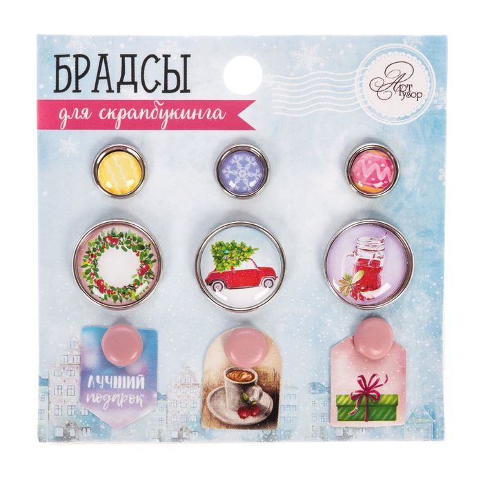 Брадсы для скрапбукинга используют для закрепления любых подвижных деталей на основе без использования клея. Декор идеально подойдет для оформления новогодних скрап-страничек, конвертов, открыток, карточек, альбомов, блокнотов и ежедневников.