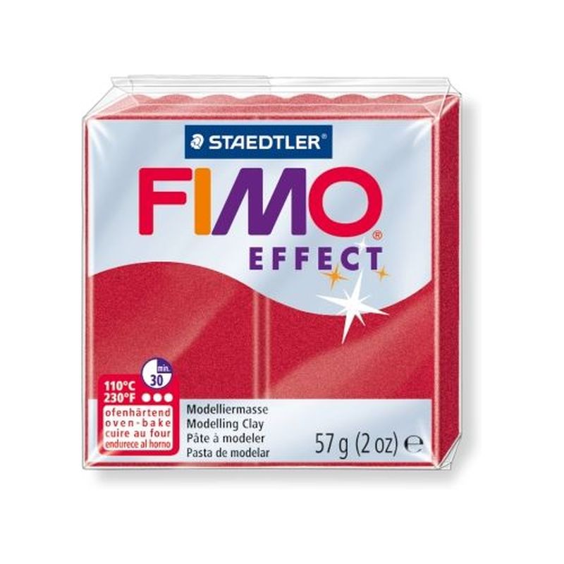 В полимерную глину Fimo Effect добавлены микрочастицы металлической слюды, позволяя имитировать металл с помощью данной пластики. Ее можно смешивать с другими цветами для получения новых оттенков.
