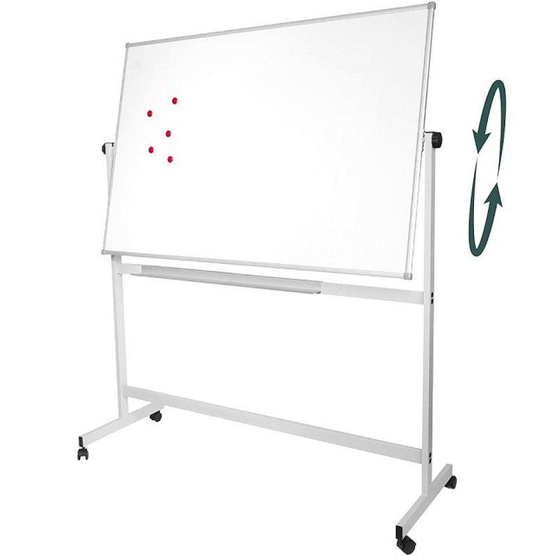 Двусторонняя магнитно-маркерная доска вращающаяся на 360 граусов, на роликах, с лаковым покрытием. Стильная мобильная подставка на 4-х колесиках с механизмом фиксации. Простой и удобный узел фиксации позволяет установить полотно доски под произвольным углом. Стойки имеют поворотные колесные опоры, что позволяет легко перекатить доску.
