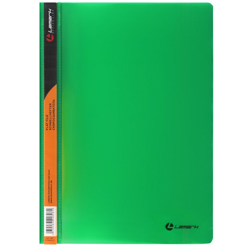 Скоросшиватель Lamark из плотного высококачественного полипропилена с заламинированным механизмом и дополнительным внутренним карманом.