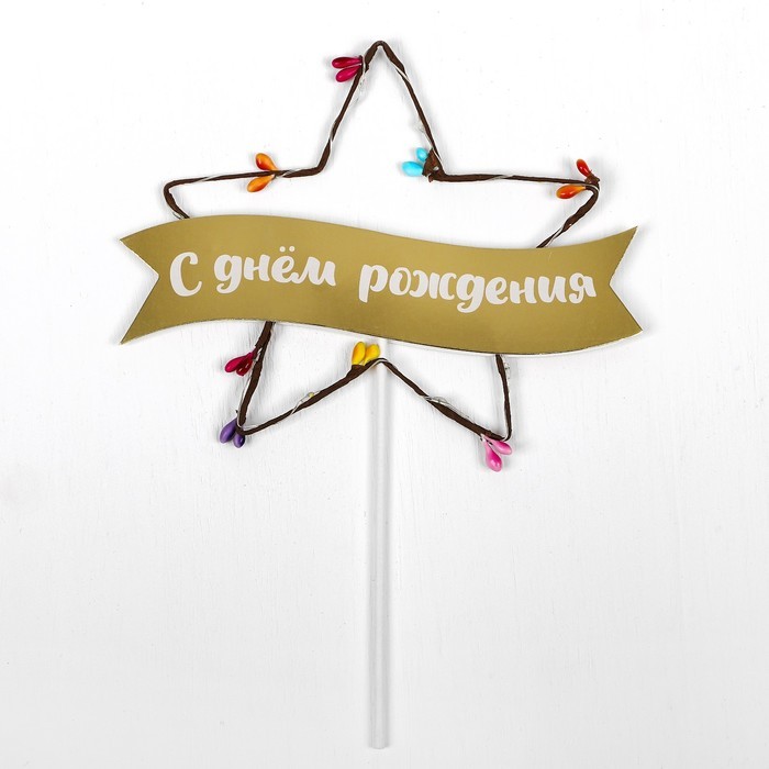 Топпер С Днём Рождения звезда с диодной лентой 25×20×0.5см