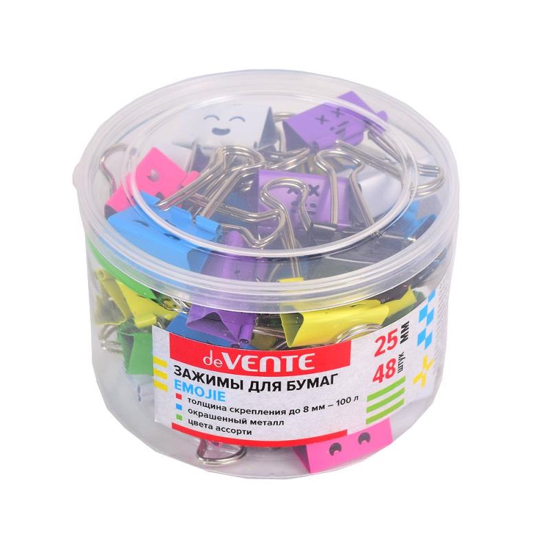 Зажимы для бумаг 25мм 48шт deVENTE цветные 'Emojie' в пластиковой банке