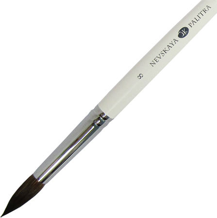 Кисти Невская палитра отвечают самым высоким требованиям. Вся стрижка и обработка делается вручную. Хорошо подобранный гуммирующий состав улучшает характеристики мазка. Он работает как утюг, разглаживая и ровно укладывая каждый волосок. Кисть, обработанная гуммирующим составом, лучше принимает и отдает краску. Все используемые обоймы гораздо более стойки в агрессивных средах. Ручка изготовлена из натурального дерева, благодаря удобной форме инструмент идеально ложится в руку художника.