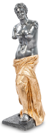 Если вы любите красоту, 27-сантиметровая статуэтка из полистоуна может добавить красоты в ваш быт и добавить гармонию в интерьер. Венеру также можно подарить девушке, которой вы хотите сделать завуалированный комплимент. Тело богини темно-серого, графитового цвета, а одеяние, прикрывающее таз и ноги Венеры — золотистое. Статуэтка поставляется в красочно оформленной коробке синего цвета.