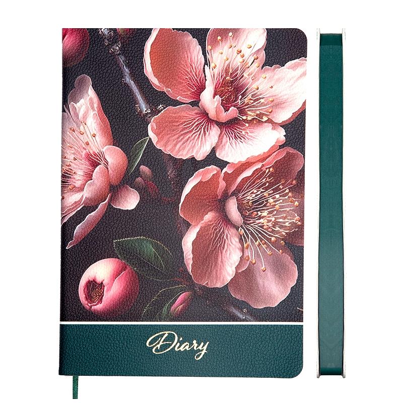 Недатированный ежедневник с гибкой обложкой из искусственной кожи с цветной печатью, тиснением фольгой, перфорацией уголков, закругленными уголками, 2 ляссе.