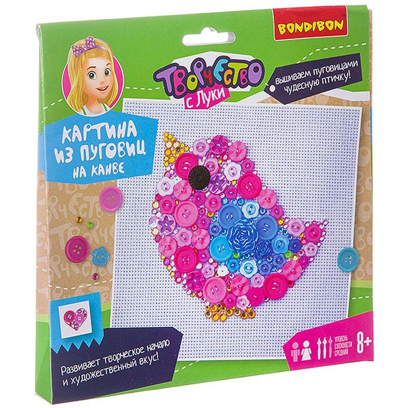 Пуговицы - интересный и необычный материал для занятий с ребёнком. Из них можно делать различные мозаики, панно, фигурки и это только краткий список. Разнообразные цвета и формы надолго займут малыша, надолго. В новом наборе bondibon предлагает совместить вышивание и создание мозаики из пуговиц, объединив положительные стороны обоих занятий. Ребёнок в игровой форме разовьёт творческое начало и художественный вкус. В комплекте канва с разметкой, разнообразные пуговицы, стразы, пайетки.