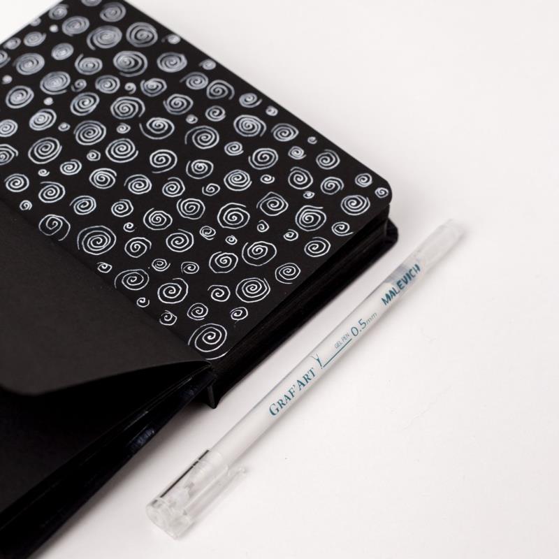 Белая гелевая ручка отлично подходит для рисования на черной бумаге. Ручка с тонким и прочным пишущим узлом толщиной 0,5 мм из металла, с белыми чернилами. Используется в акварельном и маркерном скетчинге для того, чтобы подчеркнуть детали и свет. Тонкий пишущий узел с улучшенной подачей чернил.