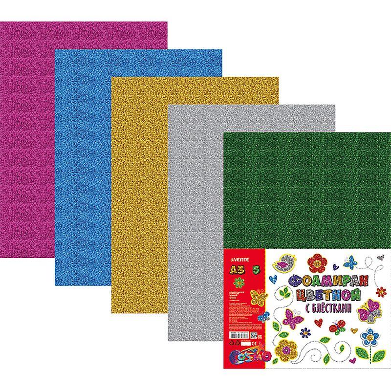 Фоамиран набор глиттерный 30х42см  2мм deVENTE  5цв  5л