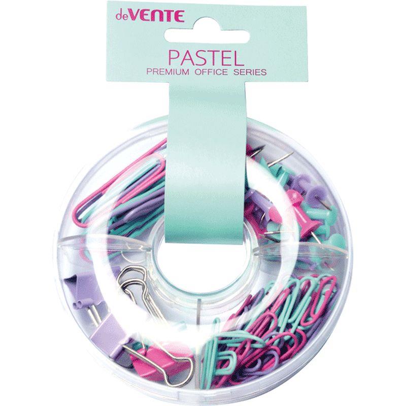Состав набора Pastel: зажимы для бумаг 19мм – 4шт, гвоздики для досок – 20шт, скрепки 50мм – 15шт, скрепки 28мм – 50шт.