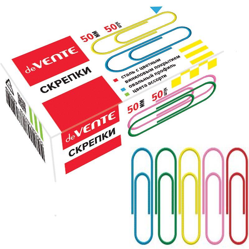 Скрепки 50мм   50шт deVENTE цветные с пластиковым покрытием в картонной коробке