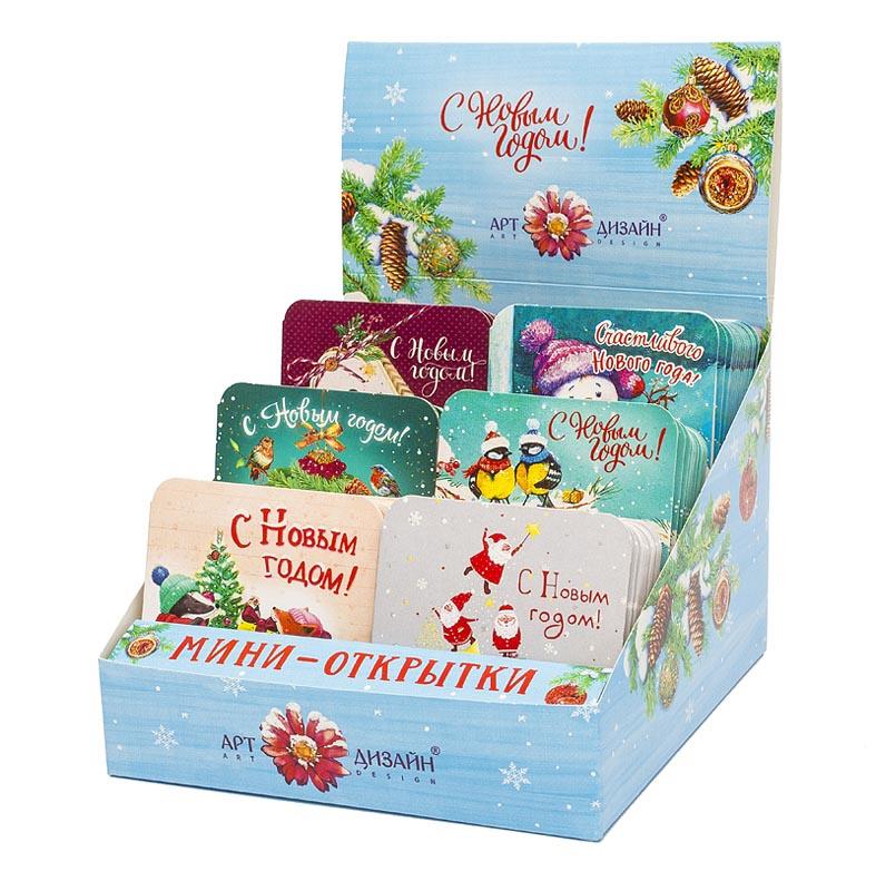 Открытка мини A&D 70х70мм ассорти Новый Год