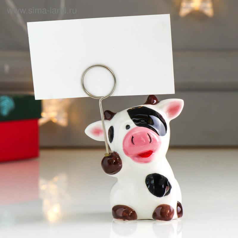 Сувенир новогодний 'Бычок пятнистый' с держателем для визиток керамика 8.5х6х6.5см