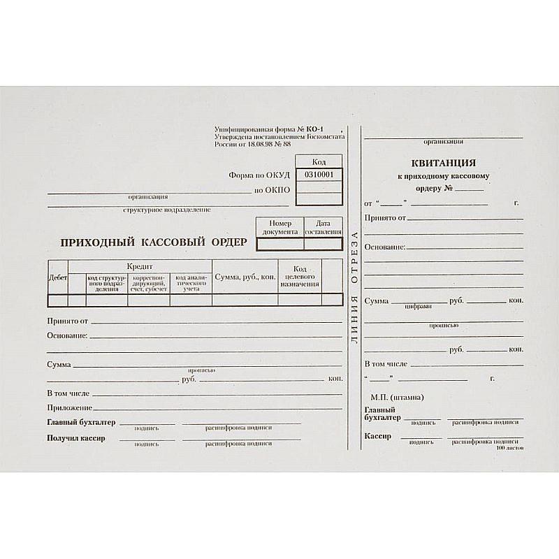 Унифицированная форма № КО-1 Применяется для документального учета и оформления кассовых операций на предприятии.
