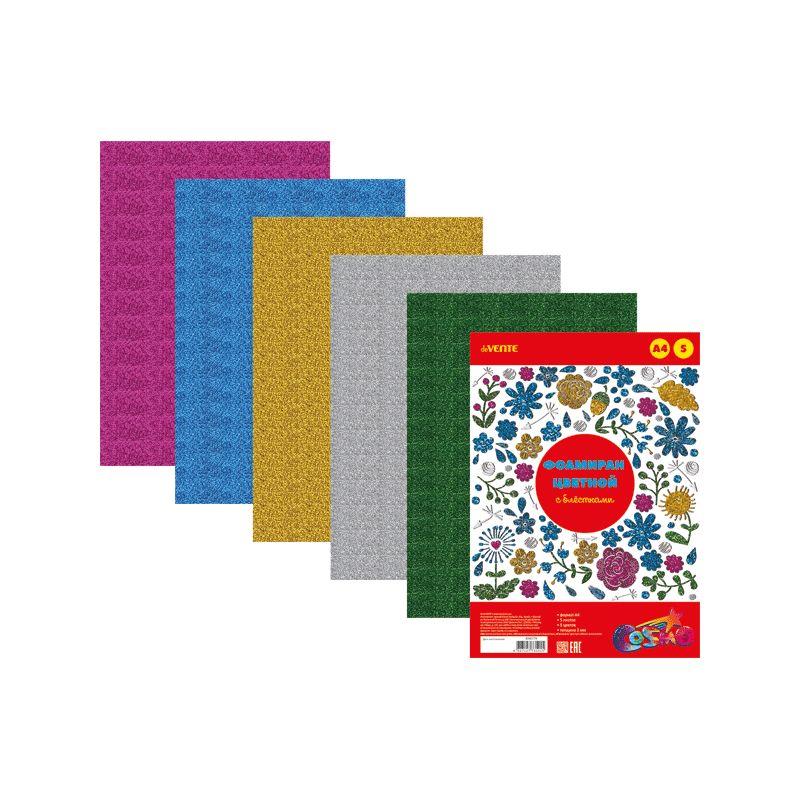 Фоамиран набор глиттерный 21х30см  2мм deVENTE  5цв  5л