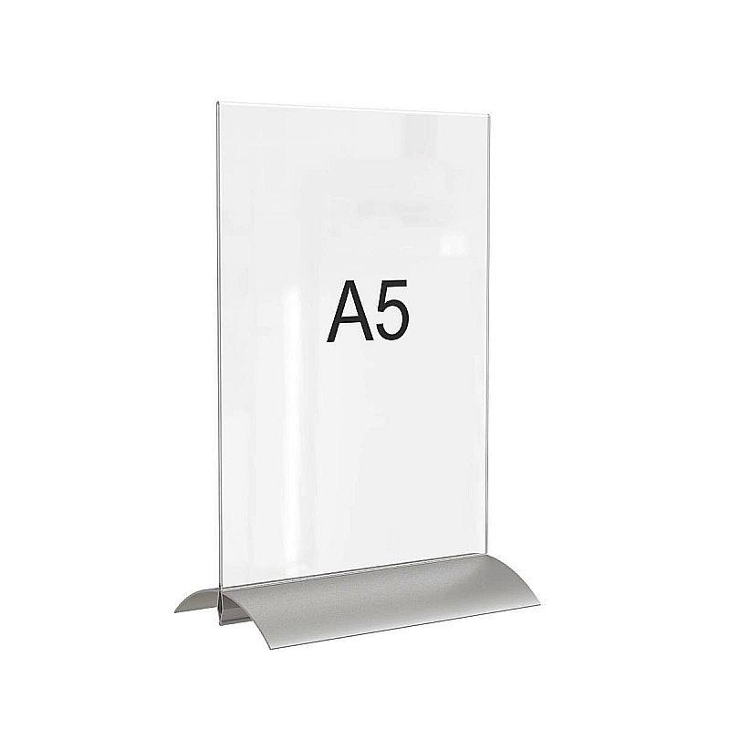 Стильный настольный держатель для информационной таблички Attache формата A5. Верхняя часть выполнена из высококачественного ударопрочного акрила. Этот пластик отличается высокой светопропускаемостью, что обеспечивает идеальную цветопередачу изображений на рекламных и информационных вставках. Кроме того, пластичность этого материала гарантирует долгий срок эксплуатации. Основание собрано из двух профилей из анодированного алюминия и комплектуется плоскими пружинами для надежной фиксации прозрачного планшета с листовкой или рекламных двусторонних постеров. Большая ширина основания и обеспечивают высокую устойчивость всей конструкции. Используется для размещения меню, листовок, флаеров и другой печатной продукции формата А5 в отелях, фитнес-центрах, ресторанах и медицинских учреждениях.