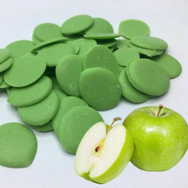 Состав: сахар, нетемперируемый лауриновый заменитель какао масла, сыворотка сухая молочная, эмульгатор (соевый лецитин Е322), ароматизатор "Яблоко", красители (Е133, Е102,Е104). Условия хранения: Упакована глазурь кондитерская хранится при температуре воздуха от +5 до +22 С и относительной влажности воздуха не выше 75%, продукт не должен подвергаться воздействию прямого солнечного света. Пищевая и энергетическая ценность 100 г продукта: белки-1; жиры-32; углеводы-64. 550 ккал/2270 кДж.