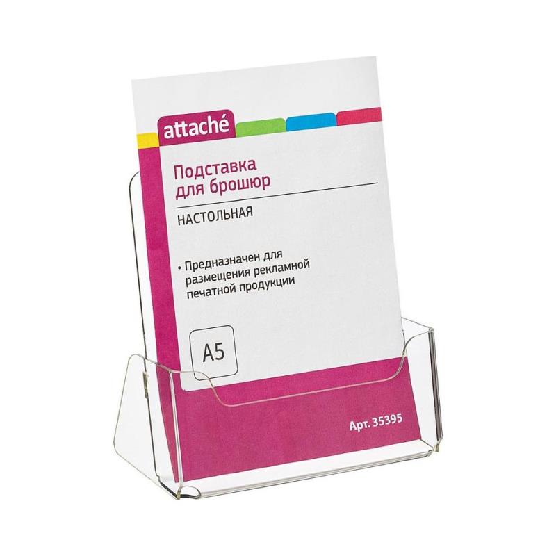 Вертикальный односторонний настольный держатель для брошюр Attache с низким бортом. Вместимость: до 300 листов бумаги 80г/м² Материал: акрилового оргстекло 2мм. Размеры: 155х158х70мм. Вес: 160г