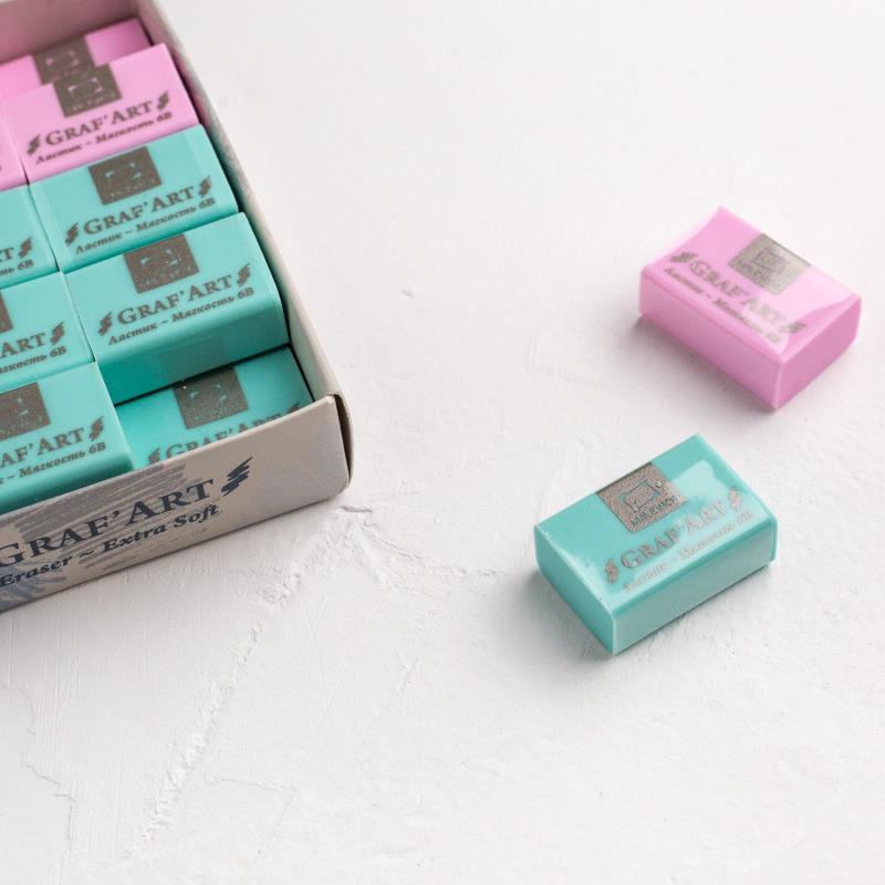 Ластик сделан из мягкого материала, который не оставляет мелких крошек, весь мусор собирается и легко удаляется с бумаги не повреждая её. Цвета в ассортименте.