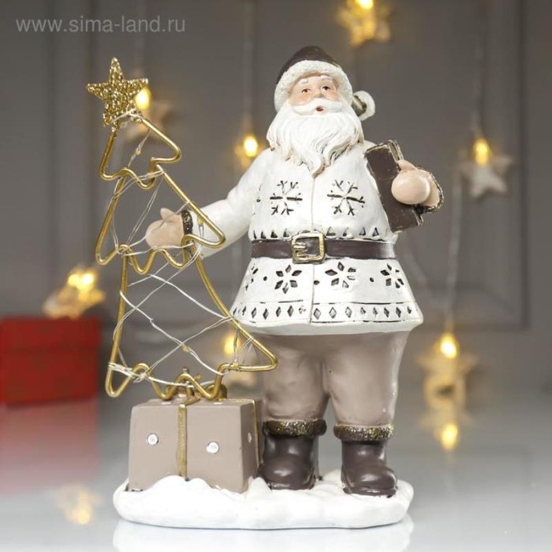 Сувенир новогодний светодиодный Дед Мороз в перламутровом кафтане с елочкой 22х10х16см