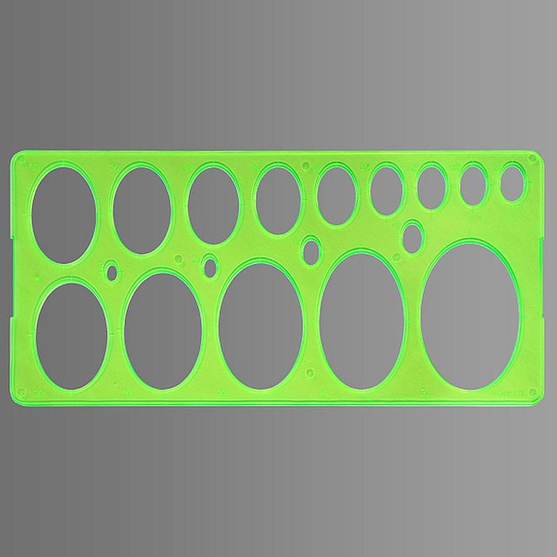 Трафарет содержит 18 эллипсов разного диаметра от 8мм до 75мм.