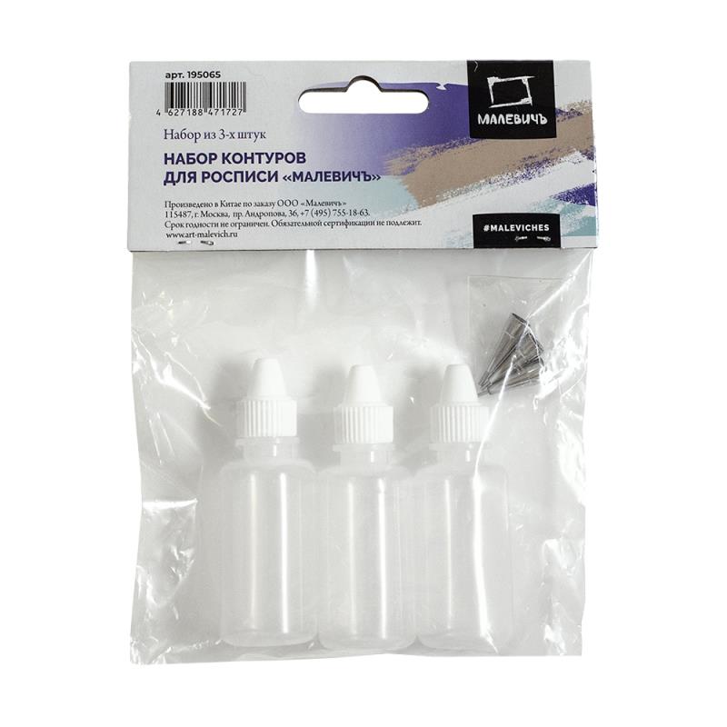 Набор флаконов с металлическими наконечниками для контурной и точечной росписи.