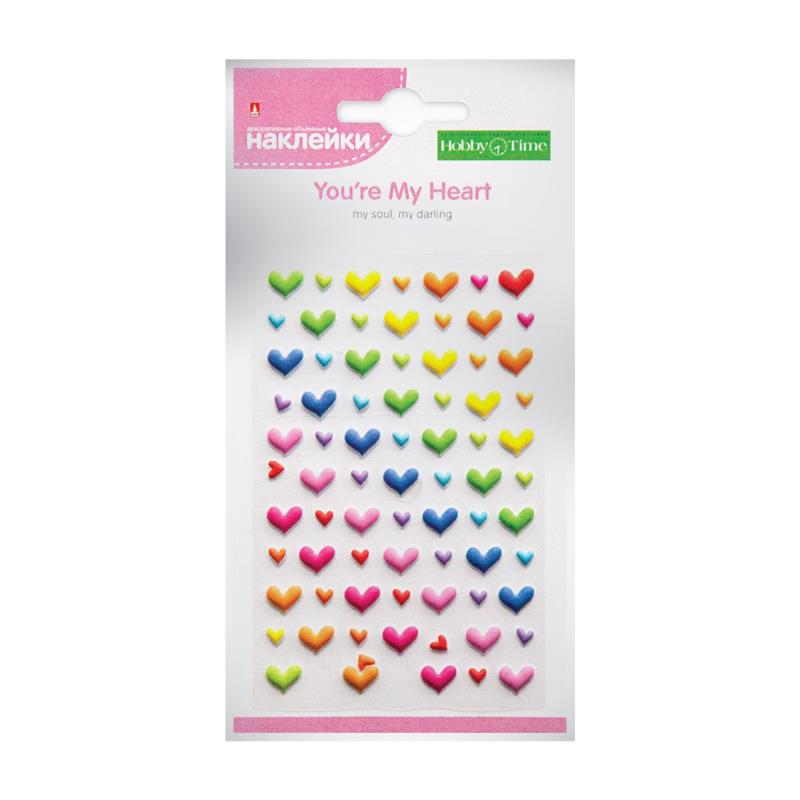 Наклейки декоративные бумажные объемные Hobby Time 'Сердечки'  6 видов ассорти