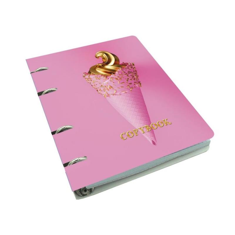Тетрадь имеет сменный блок — механизм на кольцах позволяет менять бумажный блок, добавлять или убирать листы. Обложка из плотного ламинированного картона сохраняет отличный вид тетради длительный срок.