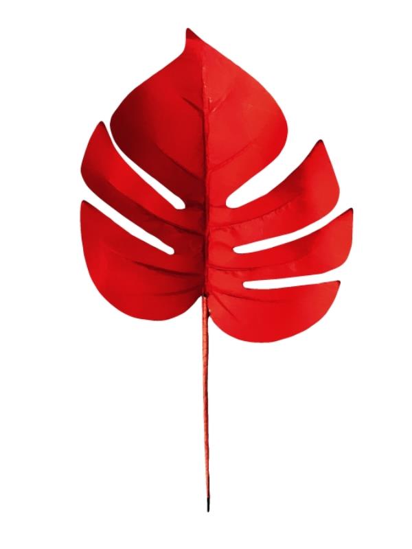 Ветка декоративная Монстера 32х20см красная матовая на прищепке