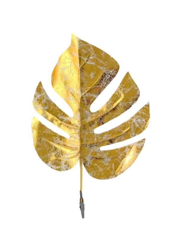 Ветка декоративная Монстера 32х20см золотая с тиснением на прищепке