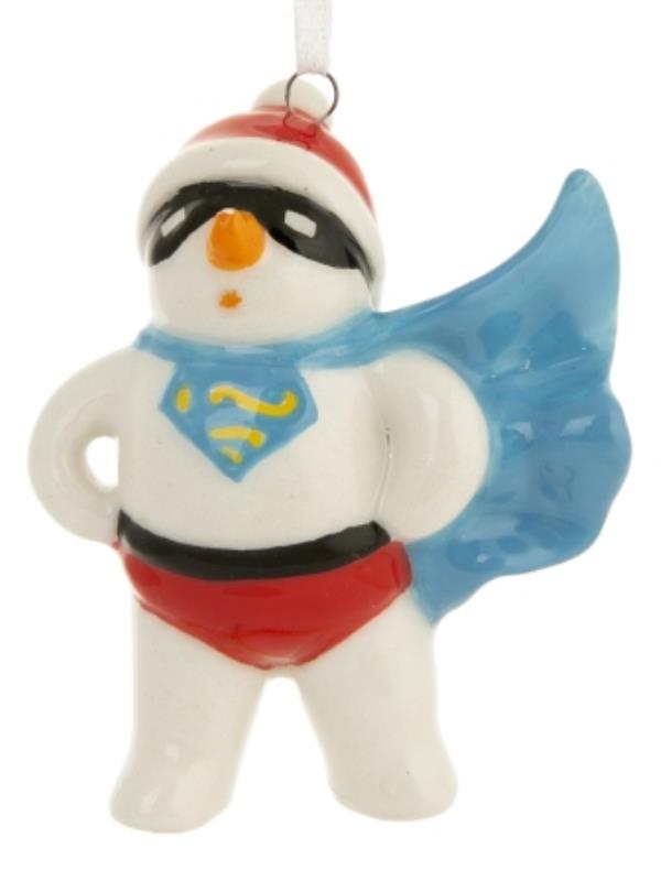 Снеговик супермен подвесной 8см керамика