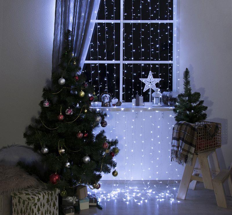 Световой занавес 2х3.0м 720 белых LED огней прозрачный провод 8 режимов мигания