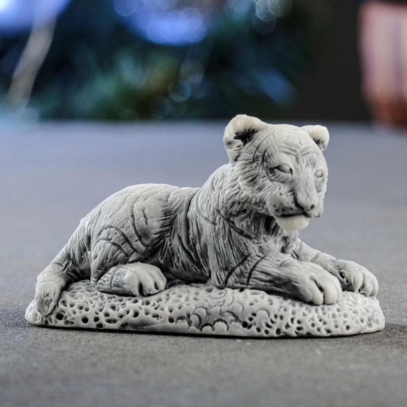 Тигренок 6см лежащий мраморная крошка