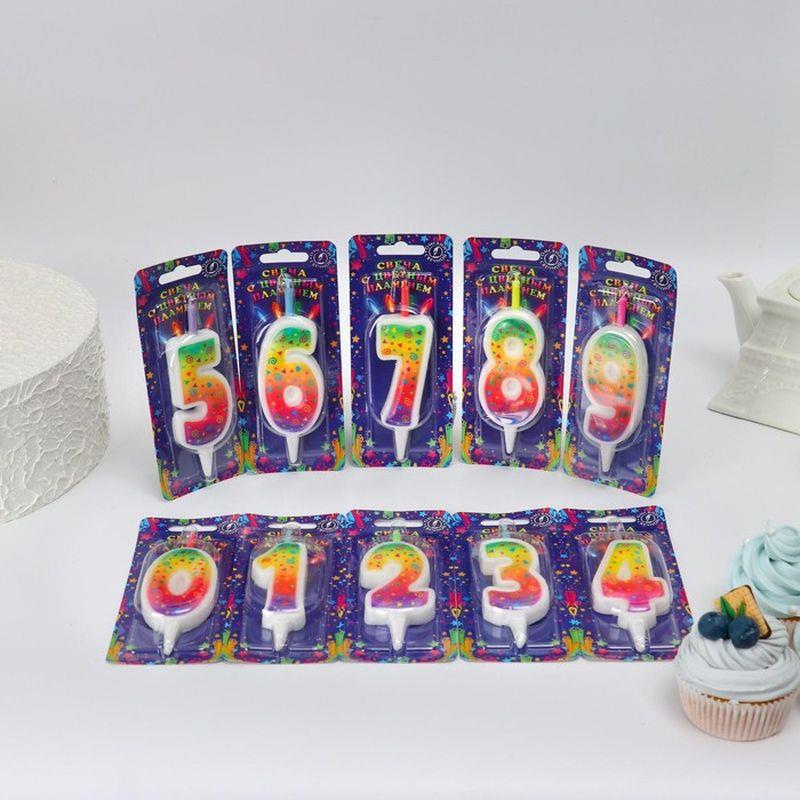 Свеча-цифра для торта 'Цветное пламя' '0'