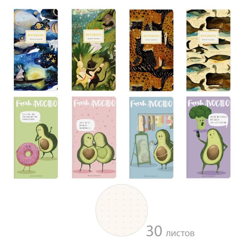 Контрастный микс из 8 дизайнов. Бодипозитивное авокадо и анималистические иллюстрации на обложках маленьких тетрадок.