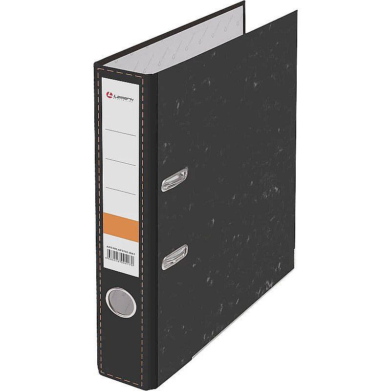 Папка-регистратор LAMARK с арочным механизмом изготовлена из плотного картона, с внешней стороны оклеена износостойкой бумагой «под мрамор». На корешке – поле для маркировки, на левой внутренней стороне – поле для классификации документов алфавитно-цифровое. Прорези на крышке удерживают папку закрытой даже при большом количестве документов. Нижние края защищены металлическим кантом, что сохраняет папку при длительном интенсивном использовании. На торце металлическое кольцо для удобства пользования папкой. Поставляется в собранном виде.