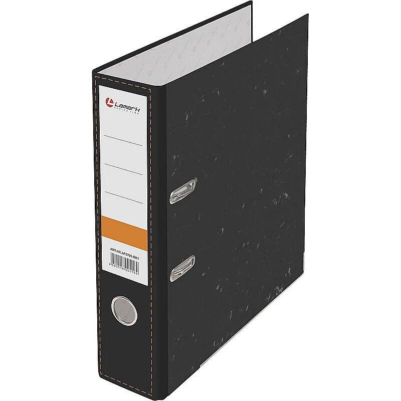 Папка-регистратор LAMARK с арочным механизмом изготовлена из плотного картона, с внешней стороны оклеена износостойкой бумагой «под мрамор». На корешке – поле для маркировки, на левой внутренней стороне – поле для классификации документов алфавитно-цифровое. Прорези на крышке удерживают папку закрытой даже при большом количестве документов. Нижние края защищены металлическим кантом, что сохраняет папку при длительном интенсивном использовании. На торце металлическое кольцо для удобства пользования папкой. Поставляется в собранном виде.