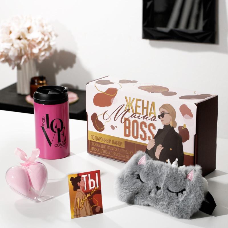 Набор подарочный Термостакан 350мл 'Жена, мама, босс' с подарками